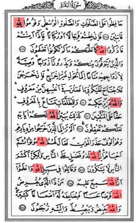 “Dördüncü Nükte: Sahife-i vâhidedeki (aynı sayfadaki) tevâfukattır. Kardeşlerimle üç dört ayrı ayrı nüshaları mukabele ettik (karşılaştırdık). Umumundaki tevâfukat matlub olduğuna kanaatimiz geldi. Yalnız matbaa müstensihleri (yazanları) başka maksadları takip ettiklerinden (hat sanatına ağırlık verdiklerinden) bir derece tevâfukatta intizamsızlık düşmüş. Tanzim edilse (düzenlense) pek nadir istisna ile mecmu-u Kur’ân’da iki bin sekiz yüz altı [2806] lafza-i Celâl’in (Allah lafzı) adedinde tevâfukat görünecektir. Ve bunda bir şûle-i i’caz (mucizelik ışığı) parlıyor.