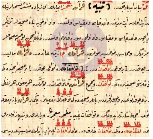 Hüsrev Efendi’nin yazdığı Mushaf’ta aynı sayfadaki tevâfukların intizama girmiş şekli