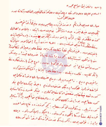 Üstad Bediüzzaman’ın Barla’daki talebelerine yazdırıp Hüsrev Efendi’ye gönderdiği yukarıdaki mektubun orijinali
